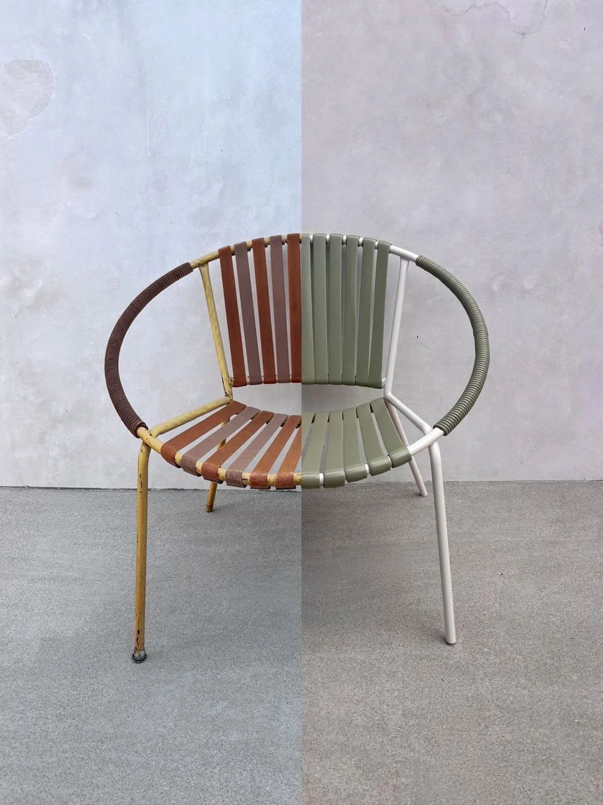 Our refurbishment service brings vintage outdoor furniture back to life, combining meticulous craftsmanship with a refined, resort-inspired aesthetic.